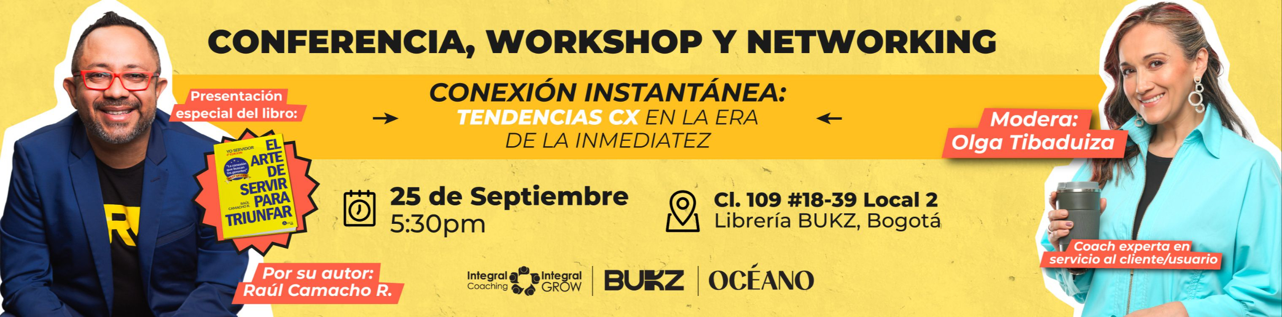 que reunirá a Raúl Camacho y a Olga Tibaduiza a cargo de Integral Coaching - Grow, Librerias BUKZ y Editorial OCÉANO.